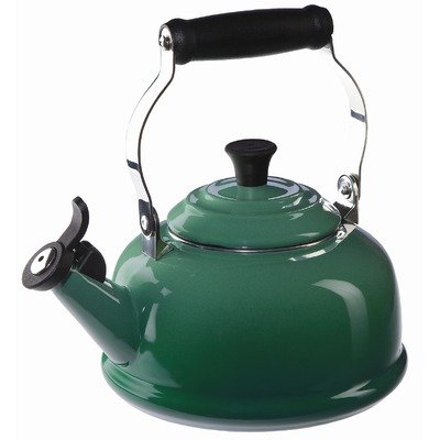 Q3101-69 Features: -Locking handle for easy lifting and pouring.-Enameled interior won't absorb odors or flavors.-Phenolic knob, handle, whistle are heat resistant.-Glazed with hard glossy enamel.-Works well on all heat sources.-Material: Enamel on Steel.-Capacity: 1.8-Quart.-Cleaning and Care: Hand wash. Color/Finish: -Attractive Fennel color. 7903532 Cookware